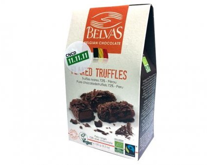 Chocolat noir à 72 % de cacao d’origine péruvienne, enrobé de copeaux aux arômes intenses et purs. 100g.